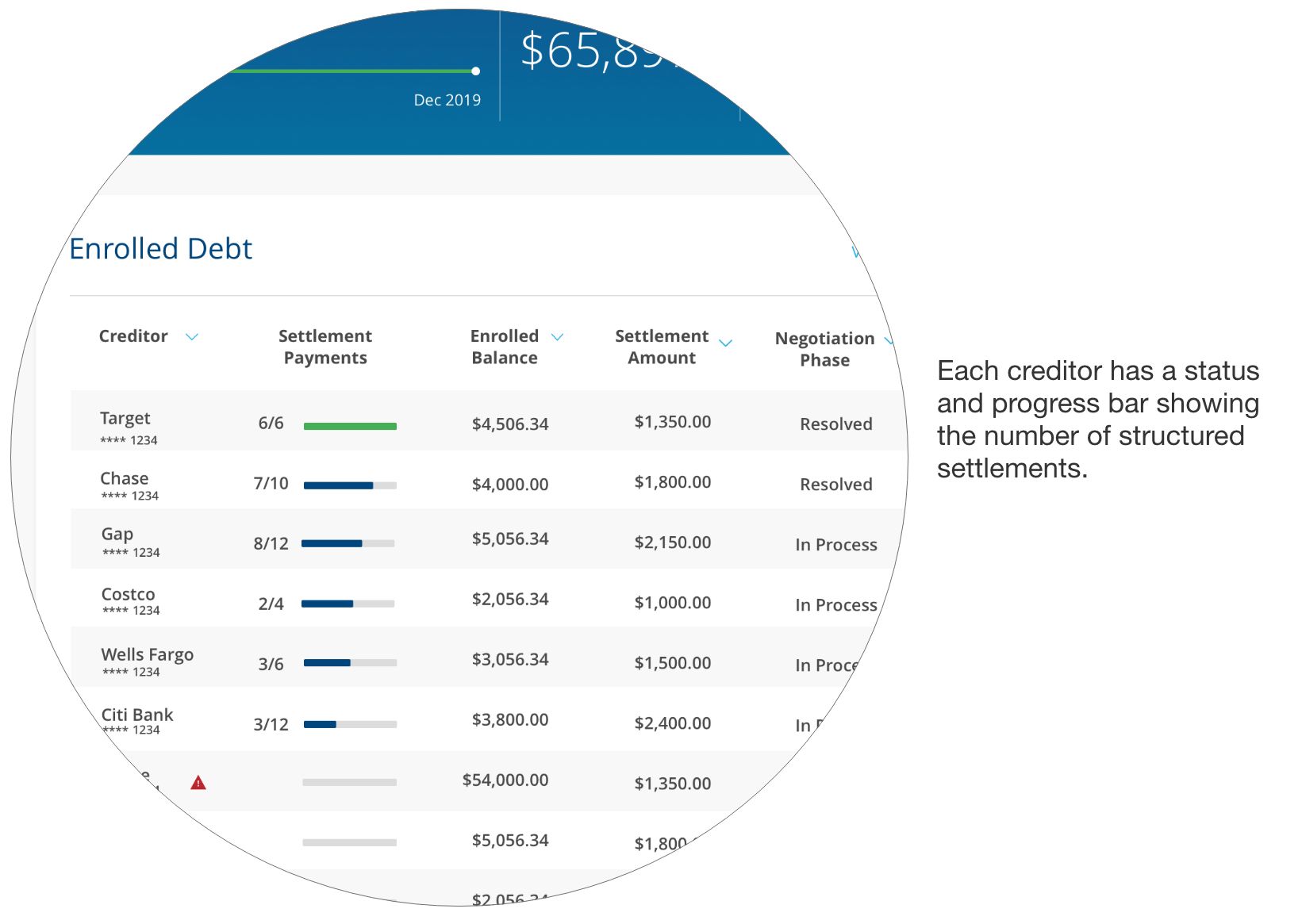 The average debt settlement client takes 3-4 years to finish their program, so having a place where they can get an update on what's happening is important to them. We also need a way to notify clients if an issue pops up or when a settlement approval is needed.
