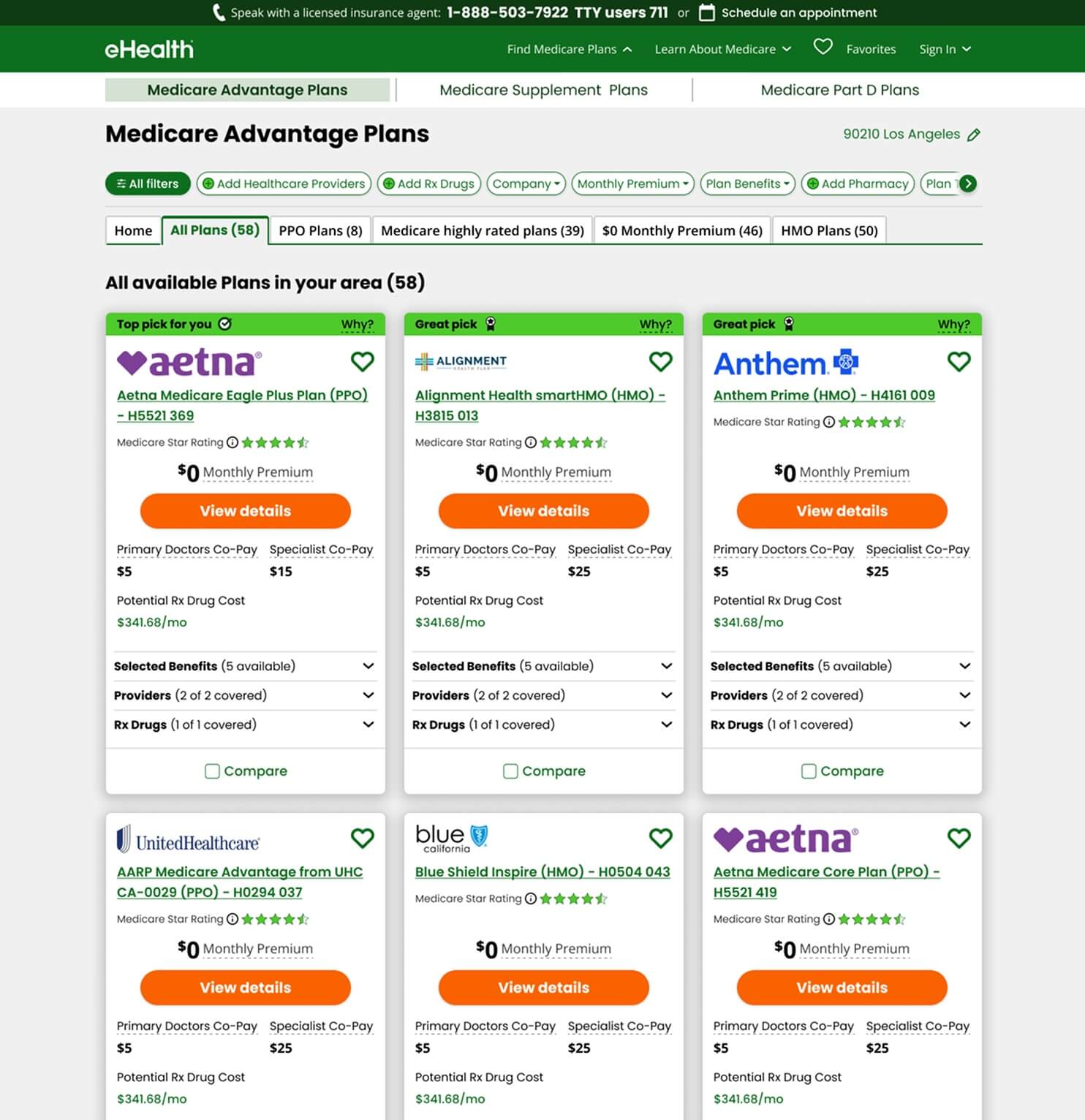 Another big win came from encouraging plan comparison through the plan card design and page layout. We moved from a vertically stacked plan card to a smaller side-by-side plan card that allowed the user to view three plans right next to each other as they scrolled down the page and enabled them to flag plans that peaked their interest. Simplifying the card information through user testing and A/B testing enabled us to figure out what plan data was critical on this page and what could wait for the plan details page.
